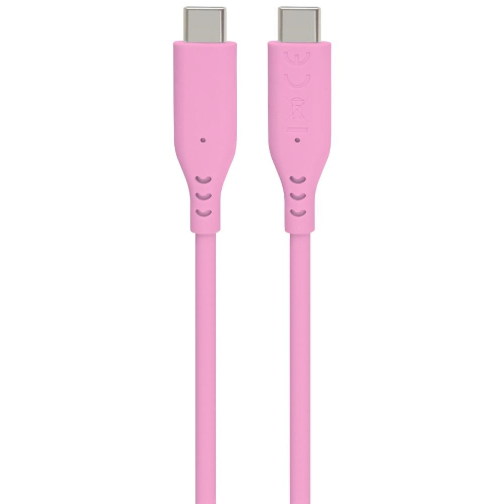 PREMIUMCORD Kabel USB-C na USB-C, 60W, 480Mbps, silikonový, růžový, 1,5m