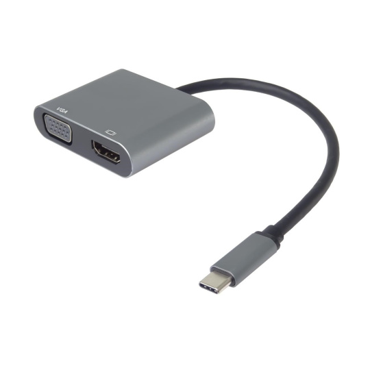 Táto adaptér umožňuje vysoko kvalitný prevod videa a zvuku z USB-C konektora na HDMI a VGA konektor pre dva monitory/TV/projektory. Funguje ako externá grafická karta s dvoma výstupmi.