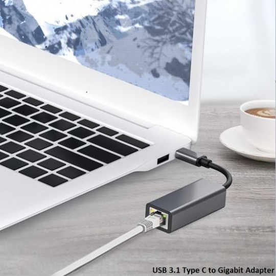 Konvertor, ktorý umožňuje pripojiť počítač s portom USB typu C k internetu alebo miestnej sieti pomocou kábla RJ45. Adaptér je vhodný pre počítače, zvyčajne notebooky, ktoré nemajú ethernetový port RJ45, alebo ak sa vám port na základnej doske pokazí, ako jednoduchá náhrada.