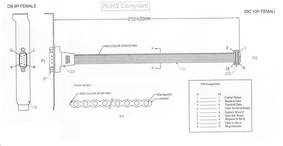 Výstup pre sériový port RS232 zo základnej dosky počítača na záslepku. Výstup sériového portu zo základnej dosky počítača na záslepku na zadnej strane počítača. - konektor Canon 9M na záslepke - vnútorný 2x 5pinový konektor - dĺžka kábla 23 cm..