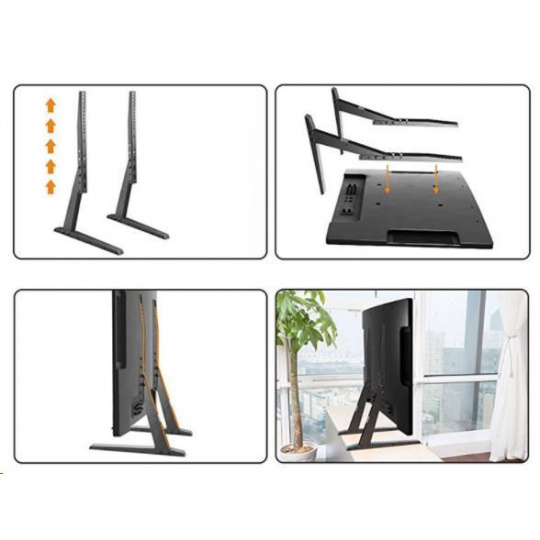 nosnosť 35kg podporuje VESA štandardy 100x100 až 800x400 vhodný na televízory a monitory s uhlopriečkou 37-70" výškovo polohovateľný 590-730mm možnosť vedenia káblov telom podstavca dĺžka podstavca 423mm stabilný, bezpečný farba čierna záruka 10 rokov Podstavec / stojan / nohy na televízor alebo monitor podporujú VESA štandardy: VESA 100x100 VESA 200x100 VESA 200x200 VESA 300x200 VESA 300x300 VESA 400x200 VESA 400x300 VESA 400x400 VESA 600x400 VESA 800x400