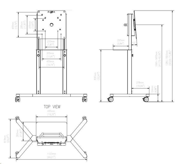 Podporované VESA štandardy: • VESA 200x200 • VESA 300x300 • VESA 400x400 • Mobilný vozík s otáčavou hlavou - pivot • Ideálny pre kancelárie alebo vzdelávacie priestory • Podporuje funkcie a vlastnosti 55-palcového displeja Samsung Flip • Maximálna nosnosť 70 kg • Atraktívny vzhľad a nastavenie výšky displeja • Konštrukcia vozíka umožňuje vedenie káblov cez hlavu, čo činí vedenie bezpečným a odolným voči opotrebeniu pri otáčaní displeja. • Bezpečné a odolné