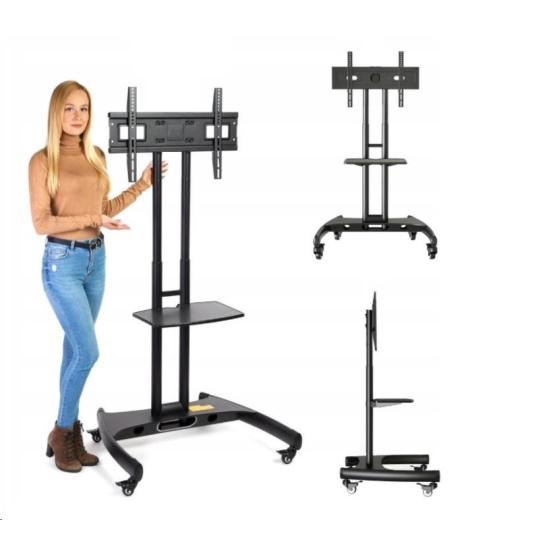 Profesionálny stojan na Tv monitory displeje NB AVA1500 Mobilný stojan na všetky typy a značky televízorov 32-65", VESA 100x100 až 600x400, nastavenie výšky 112-152cm, polička na príslušenstvo 456x320mm, vedenie káblov, kolieska s aretáciou, stabilný a spoľahlivý, nosnosť 45,3kg Televízny stojan určený nielen na komerčné účely, najvyššia kvalita a krásny dizajn. Stojan je určený na zavesenie televízorov s uhlopriečkami 32-65" všetkých typov i značiek. Dodáva sa vrátane poličky na príslušenstvo, ktorú je možné rovnako ako stojan výškovo polohovať. Lacný profesionálny stojan na televízie a monitory s uhlopriečkou 32-65 palcov, výškové nastavenie, jazda s brzdou, možnosť uzamknutia Tv, vedenie káblov, police na príslušenstvo, stabilná a bezpečná konštrukcia. TOP kvalita, prevedenie čierne alebo biele - stojany Fiber Mounts AVA1500 Televízne stojany NB AVA1500 sa najčastejšie využívajú na výstavách, prezentáciách, reklamných akciách, v čakárňach, lekárňach, ordináciách, na prednáškach a konferenciách. Jeho konštrukcia je navrhnutá tak, aby poskytoval veľmi jednoduchú a rýchlu mobilitu a výškovú flexibilitu, ktorá sa vám veľmi osvedčí práve pri rôznych prezentáciách A/V technikou. Televízne stojany na konferencie, prednášky, prezentácie - ľahké zavesenie LCD, LED, plasma, 3D, dotykových, OLED ajPrehnutých obrazoviek s uhlopriečkou 32-65 palcov, výškové nastavenie, vedenie káblov, farba čierna alebo biela - Fiber Mounts AVA1500 Technické údaje: maximálna záťaž 45,3kg vhodný na televízory a monitory s uhlopriečkou 32" až 65" podporuje VESA štandardy 100x100 až 600x400 nastavenie výšky stojanu 1120 až 1520mm systém pre skryté vedenie káblov polica na príslušenstvo 456x320mm, nosnosť 5kg, výškovo nastaviteľná kvalitné pojazdové kolieska s aretáciou výnimočná stabilita profesionálna pevná a bezpečná konštrukcia veľmi pekný dizajn farebné prevedenie čierne záruka 5 rokov Televízny stojan AVA1500 - Top kvalita za skvelú cenu Stojany na Tv NB AVA1500 podporujú VESA štandardy: VESA 100x100 VESA 200x100 a 100x200 VESA 200x200 VESA 300x100 a 100x300 VESA 300x200 a 200x300 VESA 300x300 VESA 400x200 a 200x400 VESA 400x300 a 300x400 VESA 400x400 VESA 600x400 Profesionálna konštrukcia, špičkové prevedenie, ľahká nastaviteľnosť a polica na príslušenstvo, to všetko za veľmi priaznivú cenu. Vďaka týmto vlastnostiam sa stal televízny stojan NB AVA1500 veľmi žiadaným a vyhľadávaným. Televízny stojan na reklamu a prezentáciu Fiber Mounts AVA1500 si môžete zakúpiť v čiernom alebo bielom prevedení. Výškové nastavenie, VESA štandard, police na príslušenstvo, stabilita, bezpečnosť, mobilita. Záruka 5 rokov. Veľmi lacný profesionálny stojan na Tv a monitory. Se stojany AVA1500 sa veľmi často stretávate na: výstavách prezentáciách konferenciách sieňach koncertoch prednáškach na školách v informačných centrách v ordináciách, nemocniciach čekárňach