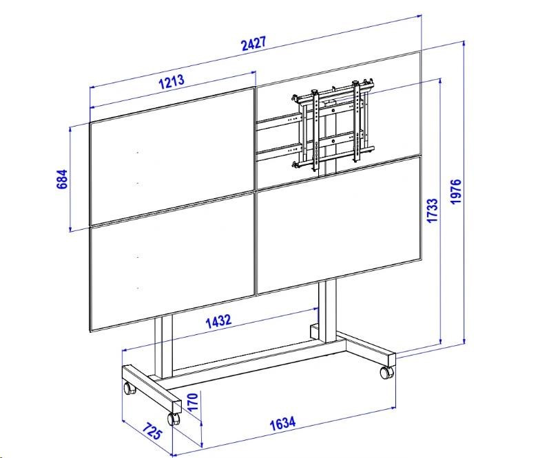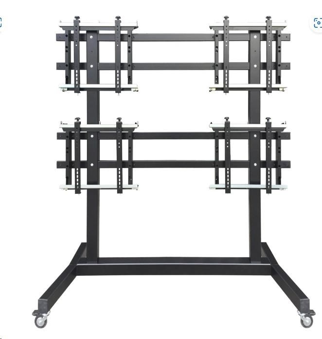 Podlahový pojízdný televizní stojan na 4 obrazovky 43" - 55", podstava 1634x725 mm, výška 1903 mm, VESA 150x150 až 400x400, nosnost 160 kg.