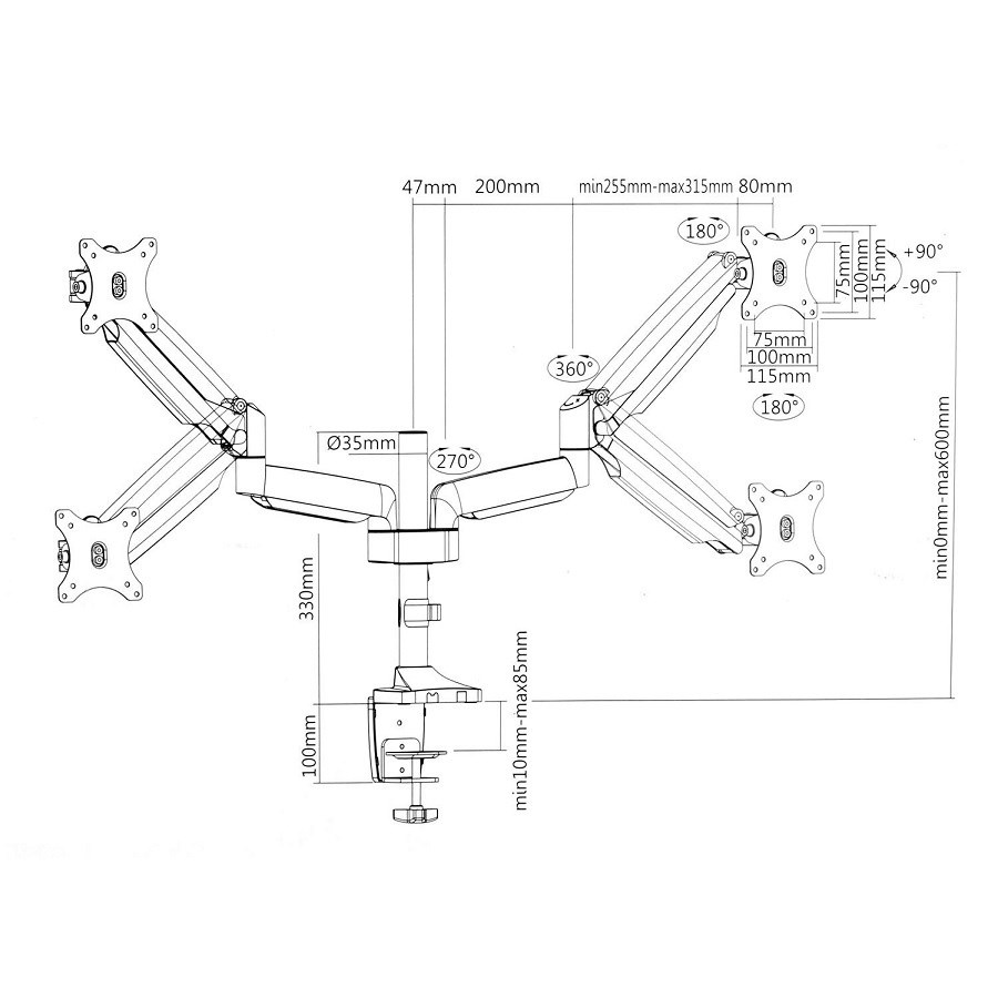 Profesionálny stolný držiak 2 monitorov Fiber Mounts M7C66 Vysokokvalitný, spoľahlivý dizajnový stolný držiak na 2 monitory 13-32", samostatné nastavenie výšky, náklonu, otáčania, vzdialenosti i výšky monitoru Stolný kancelársky pracovný držiak na nezávislé zavesenie 2 obrazoviek (monitorov, menších televízorov). Držiak je plne polohovateľný a umožňuje nastavenie pozície jednotlivých monitorov - vzdialenosť od nosníka, výška, otočenie do strán, náklon, funkcia PIVOT pre možnosť otočenia obrazovky do horizontálnej alebo vertikálnej polohy. Upevnenie na stolovú dosku (prípadne akúkoľvek inú pracovnú plochu) je možné dvoma spôsobmi - na okraj (svorkou) alebo do priestoru (nutné vyvŕtanie 1 otvoru do dosky) - obe varianty upevnenia sú súčasťou balenia. Držiak má systém na vedenie kábla. Farebné prevedenie strieborné. Záruka 3 roky. Profesionálny stolný kancelársky pracovný držiak na 2 monitory, ktorý je plne polohovateľný. Nastavenie monitorov 13-32 palcov je nezávislé, otáčanie, sklon, vzdialenosť, natočenie - Fiber Mounts M7C66 Technické údaje: nosnosť 18kg (2x9kg) držiaky podporujú VESA štandardy 75x75 a 100x100 ideálny na monitory a televízory s uhlopriečkou 13-32" nastavenie vzdialenosti od nosníka 0-530mm nastavenie výšky monitoru 0-600mm (stred obrázka) nastavenie sklonu +/- 90° otáčanie do strán +/- 180° 2 typy upevnenia na stolovú dosku sila stolovej dosky 10-85mm vedenie kábla korekcia roviny obrazoviek materiál hliník + oceľ výborná kvalita farba strieborná záruka 3 roky Vysoko kvalitný držiak na 2 monitory, ktorý vďaka svojmu dizajnu a ľahkému polohovaniu nájde uplatnenie predovšetkým v kanceláriách, ale aj v domácnostiach. Poloha každého monitoru sa ľahko nastaví presne podľa vašich požiadaviek. Monitory môžu byť umiestnené vedľa seba alebo aj s chrbtom ku sebe. Každý monitor môžete výškovo nastaviť, otočiť, meniť vzdialenosť od nosníka, prečísť na šírku alebo na výšku... Držiak má univerzálne upevnenie a je vhodný na všetky typy a značky monitorov, ale aj All in One PC s uhlopriečkou 13-32". Kancelársky polohovateľný držiak na 2 monitory Fiber Mounts M7C66 Držiak na 2 monitory M7C66 podporuje VESA štandardy: VESA 75x75 VESA 100x100