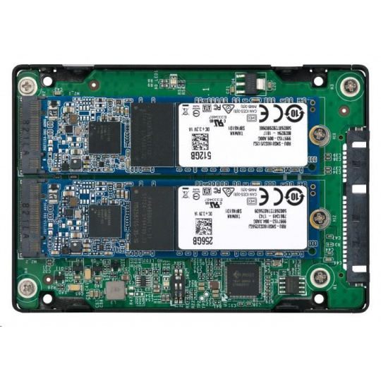 Použite dva M.2 SATA SSD moduly v jednej pozícii 2,5” pre diskové jednotky SATA s podporou RAID pre počítače a NAS