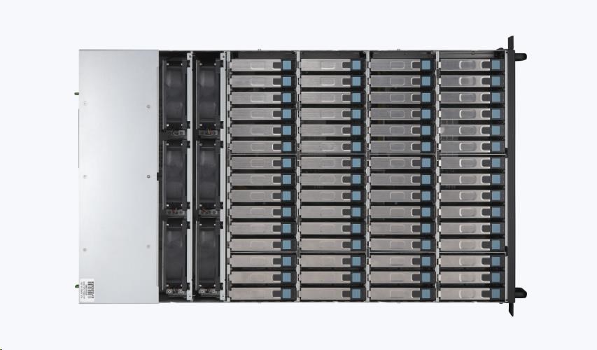 | Indikátory LED | Predný panel: HDD 1-60, tlačidlo napájania, LED indikátor stavu napájania, LED indikátor poruchy napájania, LED indikátor teploty (prepálenie), LED indikátor poruchy ventilátora Zadný panel: SAS konektor, LED indikátory stavu SAS UP/DOWN Link, ID LED |
