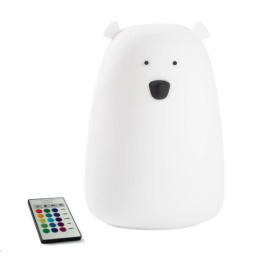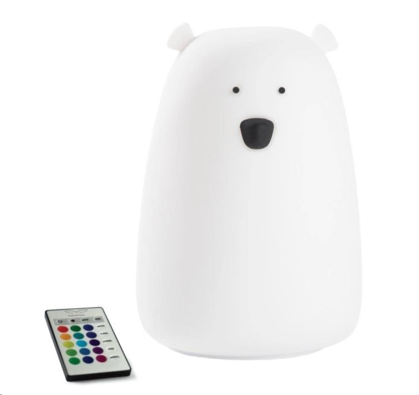 je vyrobená z príjemného a mäkkého silikónu. Vďaka možnosti výberu zo troch farebných prevedení je skvelou voľbou ako do dievčenskej, tak aj chlapčenskej izbičky. Tento roztomilý kamarát bude svojím príjemným svetlom robiť vašim deťom spoločnosť pri večernom zaspávaní, ale pokojne aj chvíľu po ňom. V prípade, že medvedíka zabudnete vypnúť, sám sa po 2 hodinách svietenia automaticky vypne. Deti si svietiaceho medvedíka natoľko obľúbia, že ho budú chcieť brať so sebou aj na dovolenku či víkendový pobyt. Lampička je určená na svietenie, nie je hračkou.