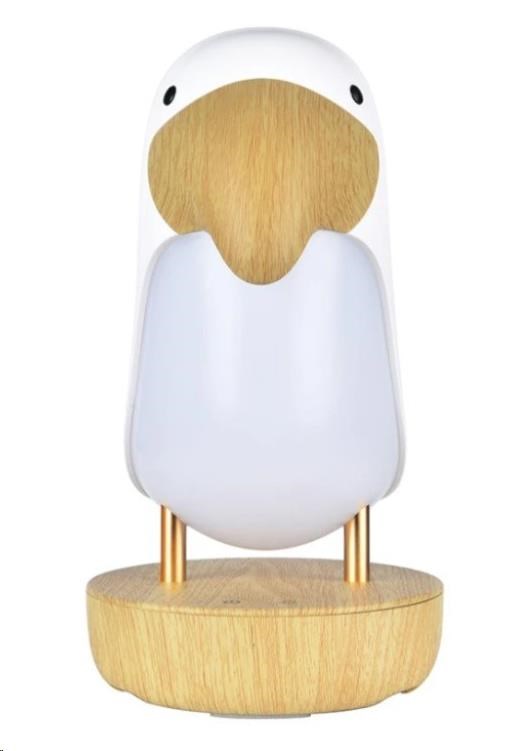 Predstavujeme vám originálnu lampičku pre deti aj dizajnové osvetlenie do obývačky alebo pracovne v podobe roztomilého vtáčika s veľkým zobákom. Detská lampička vták s nastaviteľnou intenzitou svetla a vstavaným reproduktorom vytvorí tú pravú atmosféru pri hre, pri čítaní rozprávok na dobrú noc, skvele poslúži ako nočná lampička pre ľahké zaspávanie, nočné prebaľovanie bábätka aj dojčenie. Vďaka jednoduchému ovládaniu a veselému dizajnu si deti vtáčika zamilujú.