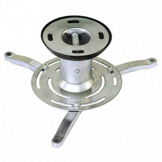 Stropní hliníkový držák na dataprojektory - vzdálenost od stropu 13 nebo 20cm (dva distanční prvky), přístroj lze otočit o 360° a naklonit +/-15°, maximální zatížení 10kg, kabelový prostup, stříbrný. Univerzální systém uchycení dataprojektorů (rozsah 13-32 cm)..
