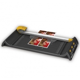 Dĺžka rezu 320 mm, t. j. formát A4. Rezanie sa vykonáva tlakom na gumový pás