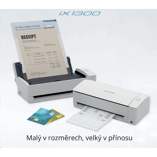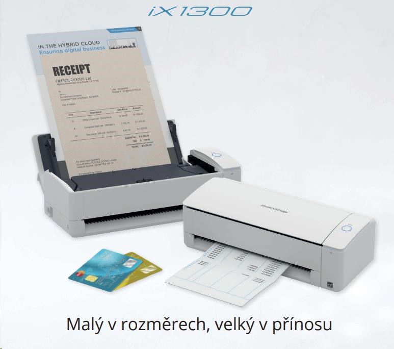 ScanSnap iX1300 je navržen pro uživatele, kteří potřebují kvalitní a rychlé skenování, ale zároveň bojují s omezeným prostorem.