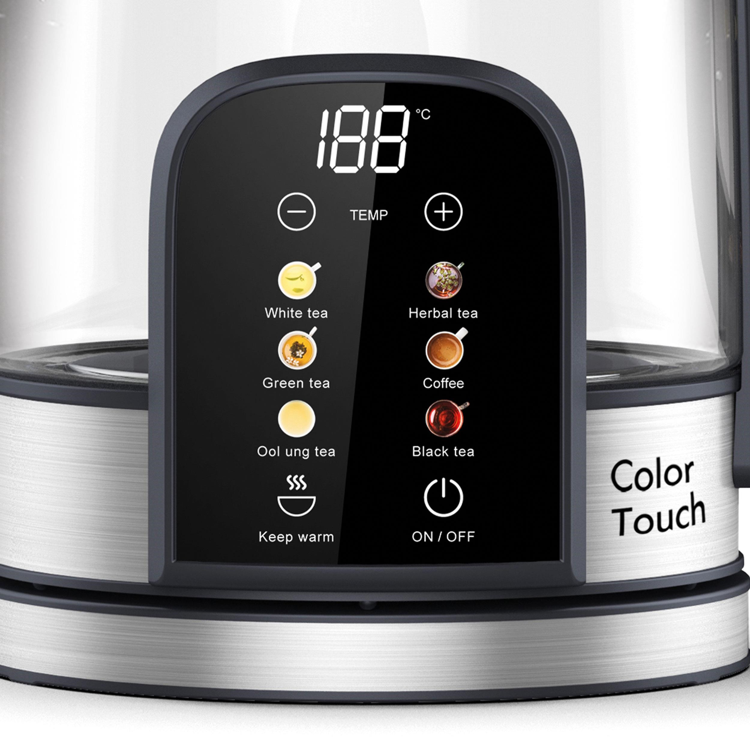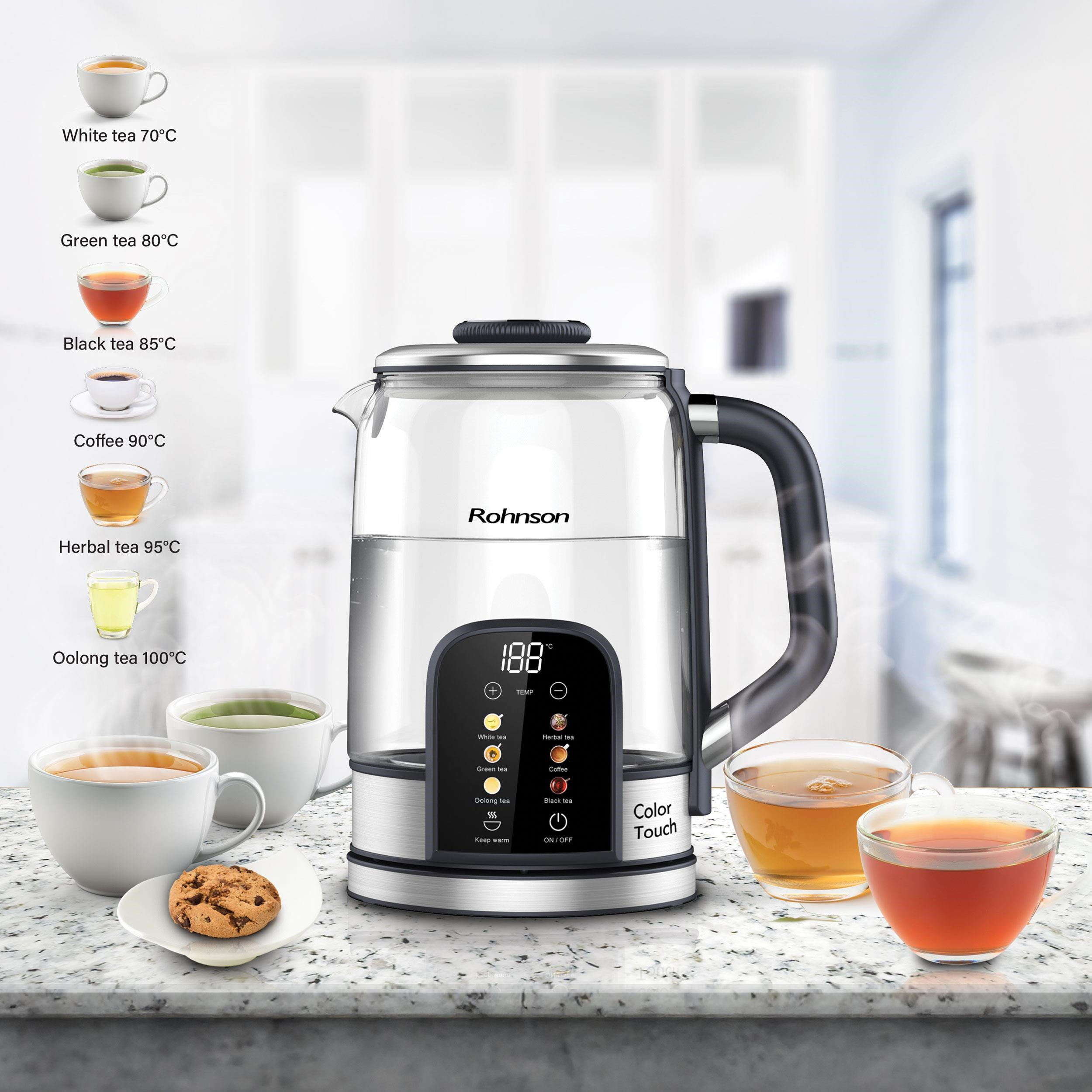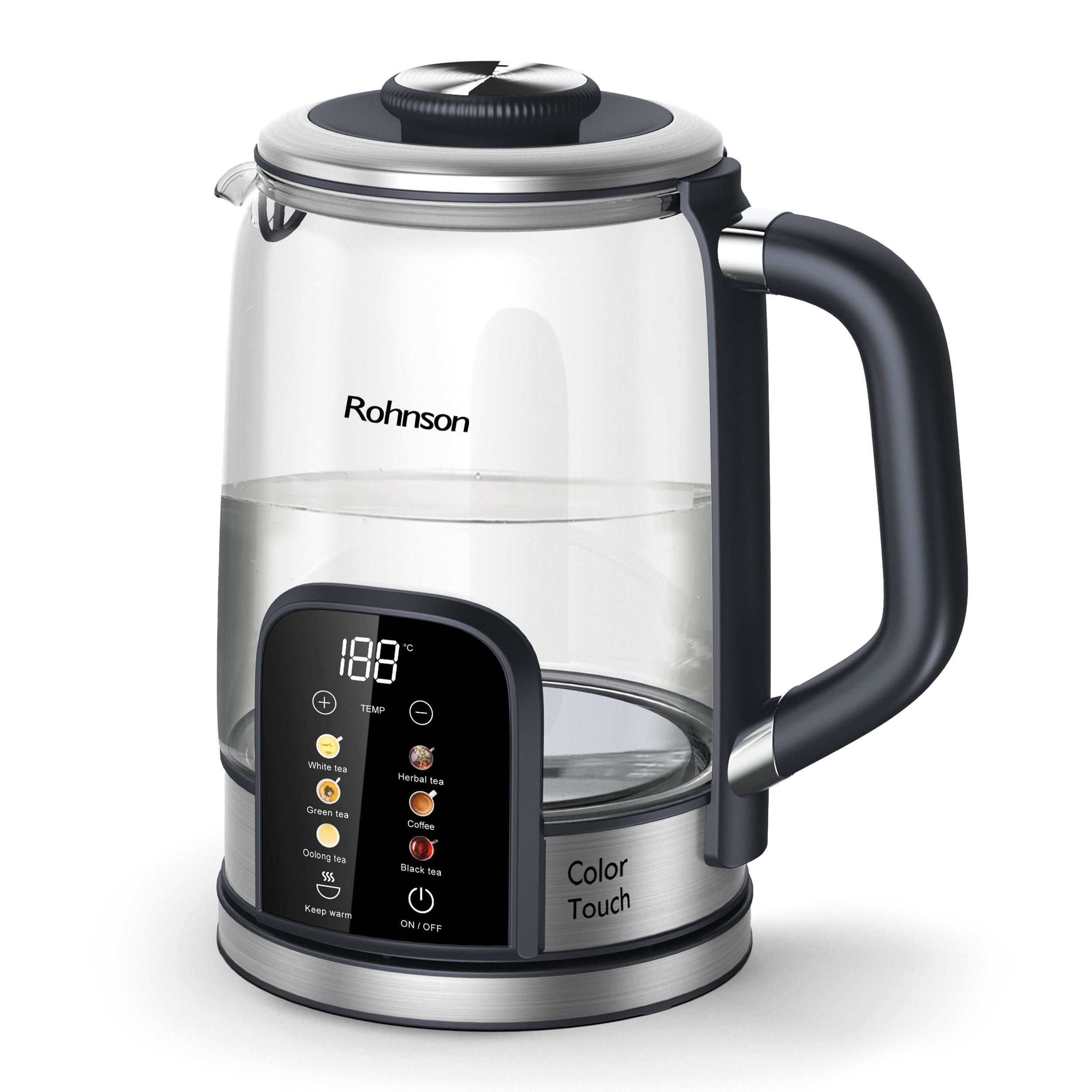 Rohnson Color Touch rychlovarná konvice, 2200 W, 6 teplot, 1.7 l, LED displej, dotykový ovládací panel, sklo