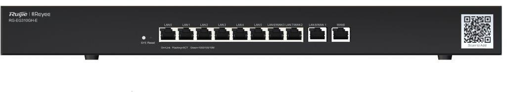 Popis produktu Ruijie RG-EG310GH-E je kabelový Gigabitový router do 19" racku s dostatečným VPN výkonem pro obsloužení poboček a vzdáleně pracujících pracovníků v rámci firmy. Bezpečný a spolehlivý router s vlastním webovým managementem, možností správy přes Ruijie Cloud odkudkoliv, blokování obsahu podle typu aplikace, inteligentní Multi-WAN load balancing s možností využít až 4 WAN porty zároveň. Router nabízí 1 Gigabitovými WAN port, 6x Gigabit LAN, 3 Gigabitový LAN/WAN porty a celkový výkon v NATu 1.5 Gbps. Router pro přístup do lokální sítě umožňuje i několik možností VPN serverů a to konkrétně: IPsec, PPTP, L2TP a OpenVPN. Limity VPN • IPsec: 230 Mbps, max. 64 tunelů • L2TP: 640 Mbps, max. 64 tunelů • OpenVPN: 100 Mbps, max. 64 tunelů Obsah balení • Zařízení • Napájecí kabel • Úchyty do racku • Racková sada Technické parametry Konektory a rozhraní Rychlosti WAN:(1) 10/100/1000Mbps Možnost více WAN:Ano Rychlost LAN:(6) 10/100/1000Mbps + (3) 10/100/1000Mbps LAN/WAN Gigabit LAN:Ano Napájení Typ napájení:Ze sítě (230V) Max. spotřeba energie [W]:15 Napájení přes konektor/svorkovnici:230V AC Fyzické charakteristiky Provedení:Rackmount Ventilátory:Bez ventilátoru Šasi:Kovové Tlačítka:Reset Provozní teplota [°C]:0 až 40 Šířka [mm]:440 Výška [mm]:44 Hloubka [mm]:200 Hardware Frekvence CPU [MHz]:1350 Počet CPU jader:2 Obecné Propustnost NAT [Mb/s]:1500 Propustnost VPN IPsec VPN [Mb/s]:230 Software Podporované VPN:PPTP, L2TP, IPSec, OpenVPN Web management:Ano Management:Webové rozhraní, Ruijie cloud Podpora IPv6:Ano Výchozí IP adresa:192.168.110.1 Výchozí jméno a heslo:Nastavuje se při prvním spuštění.