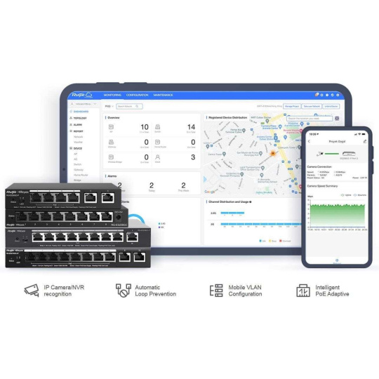 Popis produktu Inteligentní cloudově i přes webové rozhraní spravovatelný smart desktop PoE switch RG-ES206GC-P od značky Ruijie, nabízí cenově efektivní řešení s 6 Gigabit LAN porty z čehož 4 porty podporují 802.3af/at PoE s celkovým PoE budgetem 54 W. Tento kompaktní přepínač je ideální pro síťové aplikace, které vyžadují výkon a spolehlivost. Co se výčtu funkcí týče, switch nabízí tichý chod bez ventilátorů, podporu až 16 VLAN, DHCP snooping, testování kabelu, ochranou proti zakruhování a v rámci PoE možnost použití až na vzdálenost 250 m při snížení linkové rychlosti na 10 Mbps. Klíčové vlastnosti • 6× 10/100/1000 Mbps LAN porty • 4× 802.3af/at PoE - max. 30 W/port, PoE budget 54 W • Kvalitní provedení, kovové šasi • Bez venilátoru • Nízká spotřeba - max. 6 W • Správa přes webové rozhraní a cloud • Celoživotní správa na Ruijie Cloud kdykoli a kdekoli • Rozpoznávání IP kamer - jedinečná hodnota pro CCTV síť • Automatická prevence proti zakruhování • Podpora Long Range PoE na vzdálenost 250 m Obsah balení • Zařízení • Napájecí adaptér 54 V/1.1 A Technické parametry Konektory a rozhraní Rychlost LAN:(6) 10/100/1000Mbps Napájení Typ napájení:DC konektor Typy PoE:PoE-Out (pouze) Podporované PoE-Out standardy:802.3af, 802.3at Počet PoE Out portů:4 PoE budget [W]:54 PoE na vzdálenost až 250m:Ano Max. spotřeba energie [W]:6 Napájení přes konektor/svorkovnici:54V / 1,1A Fyzické charakteristiky Provedení:Desktop Ventilátory:Bez ventilátoru Šasi:Kovové Tlačítka:Reset Provozní teplota [°C]:0 až 40 Šířka [mm]:148 Výška [mm]:26 Hloubka [mm]:78 Obecné Rychlost přepínání [Gbps]:12 Tabulka MAC adres:4000 Rychlost předávání paketů [Mpps]:8,9 Software Web management:Ano Management:Webové rozhraní, Ruijie cloud Funkce:VLAN, DHCP snooping Výchozí IP adresa:10.44.77.200 Výchozí jméno a heslo:Nastavuje se při prvním spuštění.