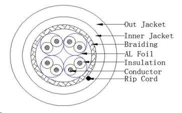 S/FTP kábel 4 páry LSZH+PE CAT 7 drôt 23AWG z čistej medi. Najmä na vonkajšie použitie alebo do extrémnejších podmienok, metrové meradlá balené na drevených cievkach po 500 m. Dvojitý plášť LSZH + PE (UV stabilný)