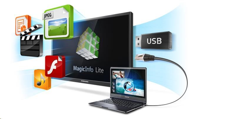 MagicInfo Lite je sofistikovaná technológia, ktorá umožňuje lokálnu alebo vzdialenú správu multimediálneho obsahu, ako sú videá alebo obrázky, ktoré môžete podľa potreby rôzne kombinovať a plánovať ich zobrazenie v požadovanom čase. Toto riešenie umožňuje používať veľkoplošný displej ako samostatnú jednotku bez nutnosti použitia externého prehrávača. Obsah je možné prehrávať z interného pamäťového zariadenia monitora, externého USB alebo vzdialene prostredníctvom vzdialeného servera.