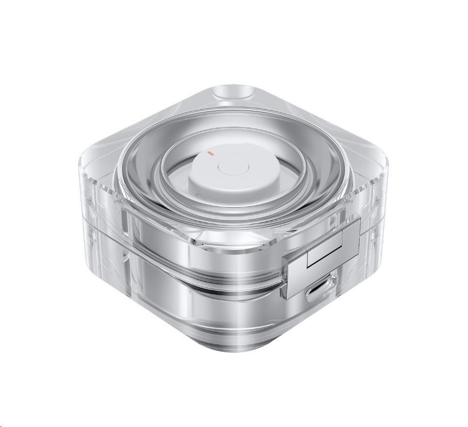 Na prsteň Galaxy Ring je krásny pohľad aj pri jeho vložení do krištáľovo čistého nabíjacieho puzdra. Jemné svetlo okolo multifunkčného tlačidla navyše šikovne indikuje úroveň nabitia batérie. Nabíjacie puzdro je možné nabíjať aj bezdrôtovo, takže keď si práve na cestách, stačí bezpečne vložiť prsteň Galaxy Ring do puzdra a pre jednoduché doplnenie energie ho položiť na bezdrôtovú nabíjaciu podložku.