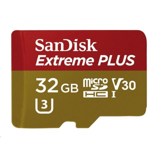 Karta SanDisk MicroSDHC 32GB Extreme PLUS (10MB/s, UHS-I V30, Rescue Pro Deluxe) + adaptér