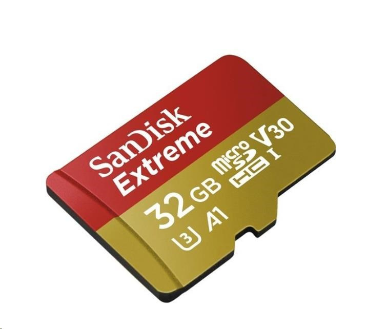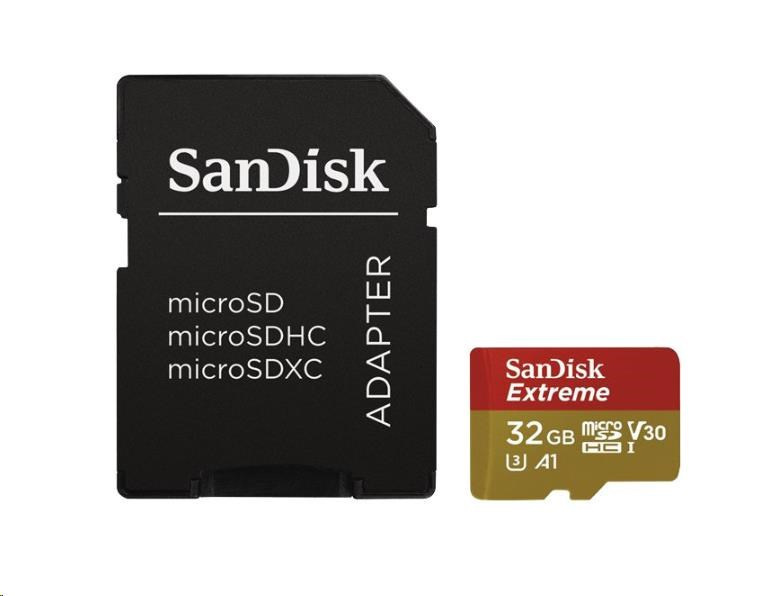 Karta SanDisk MicroSDHC 32GB Extreme (100MB/s, Class 10, UHS-I U3 V30) + adaptér