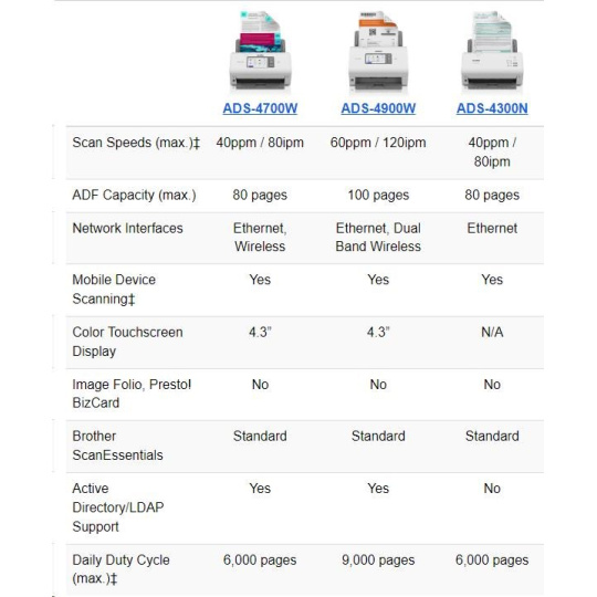 Iné ADS-4500W, odnímateľný ADF. Napájací kábel. Sieťový adaptér. Kábel USB. Stručný sprievodca nastavením. Sprievodca bezpečnosťou výrobku. Záruka