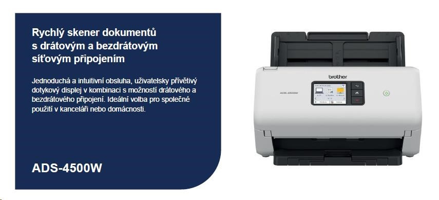 Skener BROTHER ADS-4500W DUALSKEN A4 35 str./70dual 600x600 60ADF USB LAN WIFI - displej 7.1cm