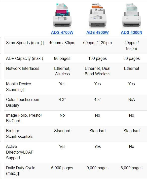 Iné ADS-4500W, odnímateľný ADF. Napájací kábel. Sieťový adaptér. Kábel USB. Stručný sprievodca nastavením. Sprievodca bezpečnosťou výrobku. Záruka