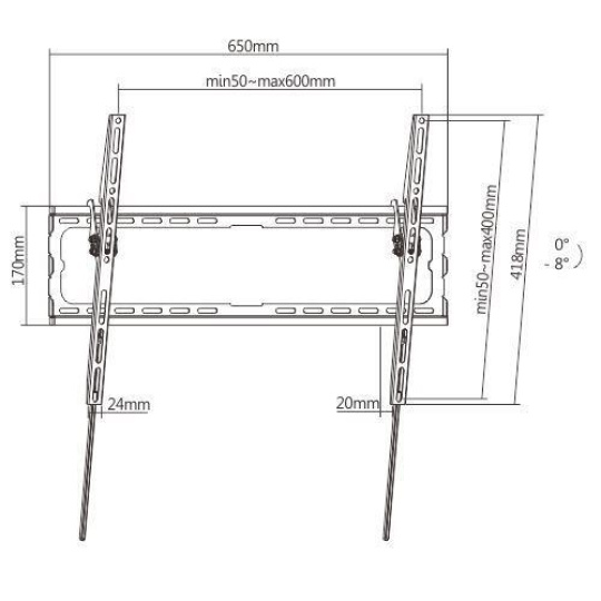 Sklopný držiak TV Fiber Mounts FM01 Držiak na TV 37-80", možnosť naklonu 0-8°, automatické upnutie TV na držiak, vzdialenosť od steny 20mm, VESA 100x100 až 600x400mm, nosnosť 45kg Kvalitný nástenný držiak s poctivou oceľovou konštrukciou na zavesenie televízorov aj monitorov s uhlopriečkou 37" až 80". Automatický systém pre bezpečné upnutie televízie na držiak bez použitia náradia, Po uchytení televízie na držiak môžete nastaviť uhol sklonu obrazovky od 0° do -8°. Široká základňa s rozmermi 650x170mm zabezpečí výborné rozloženie hmotnosti na väčšej ploche. Držiak je vhodný aj na použitie na sadrokartón (nutné overiť nosnosť a použiť hmoždinky určené na sadrokartón - nie sú súčasťou balenia). Oceľová konštrukcia, podpora VESA štandardov 100x100 až 600x400, nosnosť 45kg. Záruka 10 rokov. Poctivý nástenný držiak na televízie a monitory 37-80" s možnosťou naklonenia Fiber Mounts FM01 Technické údaje: nosnosť 45kg podpora VESA štandardov 100x100 až 600x400 vhodný na zavesenie TV a monitorov s uhlopriečkou 37" až 80" vzdialenosť TV od steny 20mm možnosť naklonenia 0° až -8° systém pre automatické upnutie TV na držiak bez náradia poctivá oceľová konštrukcia inštalačný materiál (hmoždinky, vruty, sada skrutiek) farba čierna záruka 10 rokov Ultra tenká konštrukcia zabezpečí veľmi malú vzdialenosť televízie od steny 20mm Fiber FM01 Držiak TV Fiber Mounts FM01 podporuje VESA štandardy: VESA 100x100 VESA 200x100 a 100x200 VESA 200x200 VESA 300x200 a 200x300 VESA 300x300 VESA 400x200 a 200x400 VESA 400x300 a 300x400 VESA 400x400 VESA 600x400 Poctivý naklápací držiak na televízie a displeje Fiber FM01 Na držiaky Fiber Mounts FM01 je možné zavesiť všetky typy a značky TV aj monitorov, ktoré: majú maximálnu hmotnosť 45kg podporujú ktorýkoľvek z uvedených VESA štandardov
