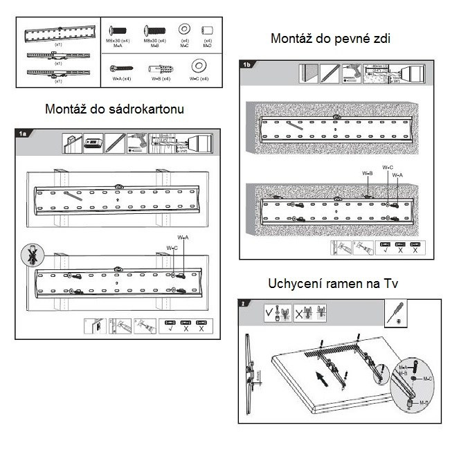 Sklopný televízny držiak Fiber Mounts M6C68 Nástenný držiak na zav á na TV 37-70", vzdialenosť od steny 53mm, nastavenie náklonu +12° až do -12°, VESA 100x100 až 600x400, nosnosť 40kg Hľadáte kvalitný naklopiteľný nástenný držiak na zav á na televízor s uhlopriečkou 37" až 70" ? Chcete držiak veľmi dobrej kvality za priaznivú cenu? V tom prípade Vám odporúčame sklopený TV držiak Fiber Mounts M6C68 pevnou konštrukciou, ktorá unesie televíziu s hmotnosťou až 40kg. Držiak podporuje VESA štandardy 100x100 až 600x400, má vzdialenosť od steny 53mm a umožňuje nastavenie TV do potrebného náklonu od +12° až do -12°. Pre jednoduchú a rýchlu inštaláciu je držiak osadený vodováhou a dodáva sa vrátane inštalačného materiálu. Farba čierna. Záruka 5 rokov. Naklápací nástenný držiak na televízie 37-60" Fiber Mounts M6C68 Technické údaje: nosnosť 40kg podporuje VESA štandard 100x100 až 600x400 odporúčame na televízory s uhlopriečkou 37" až 70" vzdialenosť obrazovky od steny 53mm náklon +12° až -12° ľahké zaistenie sklonu v požadovanej polohe držiak M6C68 je osadený vodováhou pre rýchlejšiu a jednoduchšiu inštaláciu dodávame vrátane montážneho materiálu (hmoždinky, vruty, šrouby) bezpečná veľmi pevná konštrukcia z ocele ľahká a rýchla montáž farba čierna záruka 5 rokov Integrovaná vodováha na Tv držiak M6C68 pre jednoduchšiu inštaláciu na stenu Instaláčný materiál, ktorý je súčasťou balenia TV držiaka M6C68 Držiak na televízie M6C68 podporuje VESA štandardy: VESA 100x100 VESA 200x100 VESA 200x200 VESA 300x200 VESA 300x300 VESA 400x200 VESA 400x300 VESA 400x400 VESA 600x400 Nástenný sklopný TV držiak M6C68 je vhodný na zav á na všetkých značiek, typov i veľkostí televízorov, ktoré podporujú ktorýkoľvek z vyššie uvedených VESA štandardov a ktorých hmotnosť nie je vyššia ako 40kg. Samotná montáž držiaku na stenu je veľmi jednoduchá a zvládne ju aj úplný začiatočník.
