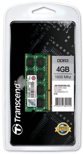 SODIMM DDR3 4GB 1600MHz TRANSCEND JetRam™, 256Mx8 CL11, maloobchodný predaj