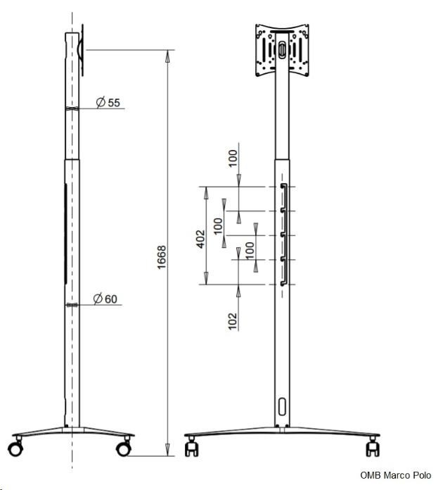 Špičkový stojan na televizory a monitory 19-46", nosnost 30kg, OMB Marco Polo - držák