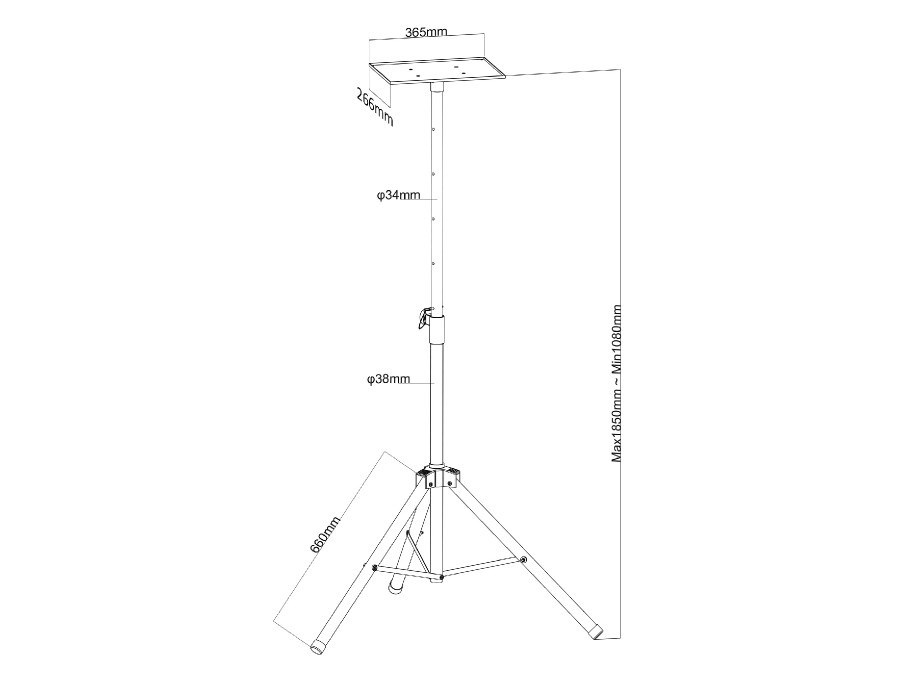 Stojan na projektor Fiber Mounts M9C53 Stojan na projektory s nastaviteľnou výškou od podlahy 108-185cm, police 365x266mm, nosnosť 8kg Podlahový stojan nielen na projektory s policou o rozmeroch 365x266mm, kde si ľahko nastavíte požadovanú výšku v rozsahu 108cm až 185cm od podlahy. Rýchla montáž, bez potreby akýchkoľvek nástrojov. Stojan je vo zloženom stave veľmi skladný a ľahký, ideálny aj pre časté prenášanie alebo prevoz. Farebné prevedenie čierne, záruka 3 roky. Technické údaje: nosnosť 8kg nastaviteľná výška od podlahy 1080-1850mm polica s rozmermi 365x266mm ľahká a rýchla montáž bez nástrojov farebné prevedenie čierne záruka 3 roky