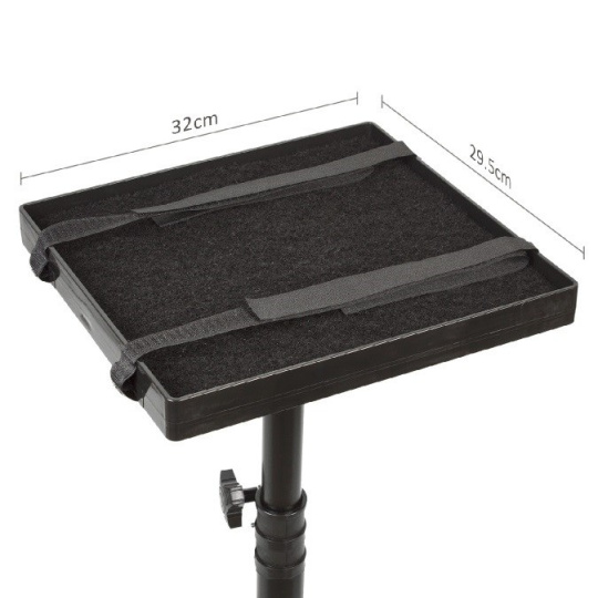 Stojan na projektor Fiber Mounts M9C20 Stojan na projektor alebo notebook, polica s rozmermi 320x295mm, nastavenie výšky od podlahy 75-120cm, istiace popruhy na suchý zips, nosnosť 10kg Podlahový stojan nielen na projektor alebo notebook s policou o rozmeroch 320x295mm, kde si jednoducho nastavíte požadovanú výšku v rozmedzí 75cm až 120cm od podlahy. Polica je vybavená istiace popruhy na suchý zips. Rýchla montáž, bez potreby akéhokoľvek náradia. Stojan je v zloženom stave veľmi skladný a ľahký, ideálny aj na časté prenášanie alebo prepravu. Farebné prevedenie čierne, záruka 3 roky. Stojan na projektor alebo notebook Fiber Mounts M9C20 Technické údaje: nosnosť 10kg horná polica o rozmeroch 320 x 295mm nastaviteľná výška police od podlahy od 750mm až do 1200mm ideálny na projektory, menšie notebooky, laptopy, All in One PC a pod. istiace popruhy na suchý zips jednoduché skladanie a nastavenie stojanu do požadovanej výšky skladný, ľahko prenosný farebné prevedenie čierne záruka 3 roky Stojan na laptop Fiber Mounts M9C20 Široké spektrum využitia - stojan nemusí primárne slúžiť iba na projektory, ale napr. aj na notebooky, laptopy, All in One PC a pod. Fantázii sa medze nekladú! Zariadenie nesmie mať hmotnosť vyššiu ako 10kg a malo by sa zmestiť na poličku o rozmeroch 320x295mm.