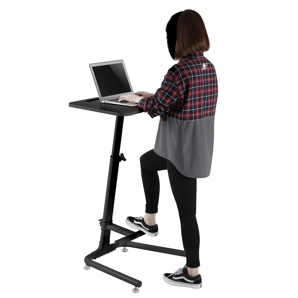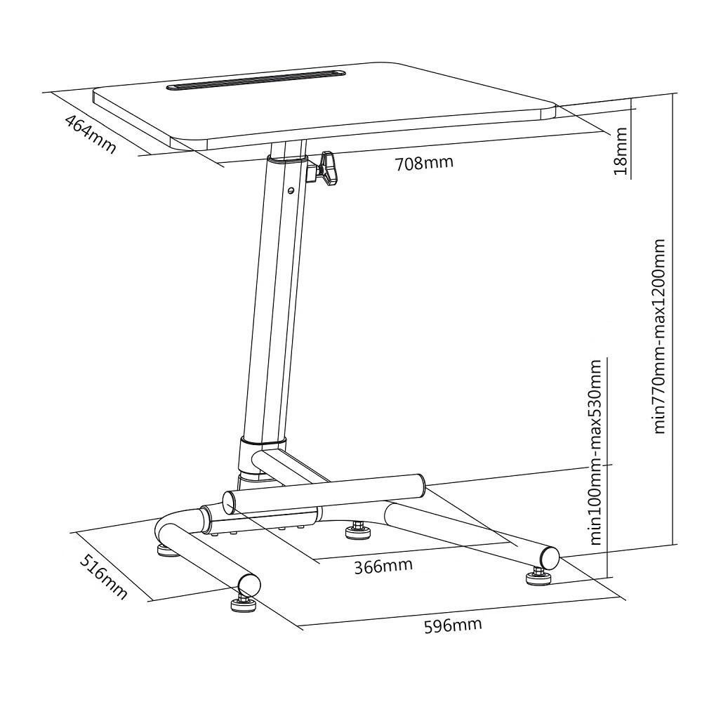 Stolek na notebook laptop Fiber Mounts M8C49B Stolek na notebook alebo laptop, ľahké nastavovanie výšky pre prácu v sede alebo v stoji 77-120cm, rozmer stolíka 708x464mm, drážka na tablet, podnož s nastaviteľnou výškou 100-530mm, rozmer podstavy 596x516mm, nosnosť 8kg Veľmi pekný, stabilný a spoľahlivý stolík na notebook, laptop alebo iPad. Výškové polohovanie od 77cm do 120cm je mimoriadne jednoduché vďaka vztlakovej pružine - veľmi ľahko sa vysúva nahor a ak chcete výšku znížiť, stačí uvoľniť aretačnú maticu a zatlačiť na hornú dosku. Konštrukcia je osadená podnožím so nastaviteľnou výškou od 10 do 53cm - ak na stolíku podnož nechcete, nemusíte ju inštalovať. Veľmi pekný dizajn v čiernej farbe. Stôl môžete využiť aj ako pracovnú stanicu, predajnú pultovú, podstavu na projektor, je vhodný tiež na prezentácie alebo výstavy, do stánkov atď. Stôl má vynikajúcu stabilitu vďaka stojanu s rozmermi 596x516mm osadenému 4 protisklzovými nôžkami a poctivej veľmi pevnej konštrukcii. Maximálne odporúčané zaťaženie hornej dosky z MDF je 8kg. Na stolík poskytujeme predĺženú záruku na 5 rokov. Stôl na notebook alebo laptop s nastaviteľnou výškou, ľahká zmena polohy pre prácu v sede alebo v stoji, podnož, pevná konštrukcia, stabilita a spoľahlivosť - Fiber Mounts M8C49B Technické údaje: nosnosť 8 kg rozmery hornej dosky 708 x 464 mm veľmi rýchle a jednoduché nastavenie výšky stolíka vďaka vztlakovej pružine nastaviteľná výška stolíka 77 až 120 cm možnosť práce v stoji alebo v sede - mimoriadne rýchla zmena polohy nastaviteľná výška podnože 10 až 53 cm podnož nemusí byť na stolíku, je odnímateľná špičková poctivá konštrukcia rozmery podstavy 596 x 516 mm protisklzové nôžky na podstave s vyrovnaním podľa podlahy vynikajúca stabilita a bezpečnosť farebné prevedenie čierne alebo biele záruka 5 rokov Výškové nastavenie stolíka na notebook je mimoriadne jednoduché a rýchle vďaka zabudovanej pružine - Fiber Mounts M8C49B Praktický spoločník pre Vaše prezentácie, výstavné stánky, kancelárie alebo domácnosti, vhodný aj do malých priestorov. Stolík vyniká spoľahlivou konštrukciou, ktorá je pritom veľmi pekná. Vďaka ľahkému výškovému polohovateľnosti (vztlaková pružina) môžete kedykoľvek pracovať v sede alebo naopak v stoji. Určite oceníte aj praktickú podnož, ktorú je možné taktiež výškovo regulovať, v prípade potreby ju môžete aj zo stolíka demontovať. Spoľahlivé, praktické a pekné riešenie pre vašu prácu na notebooku.