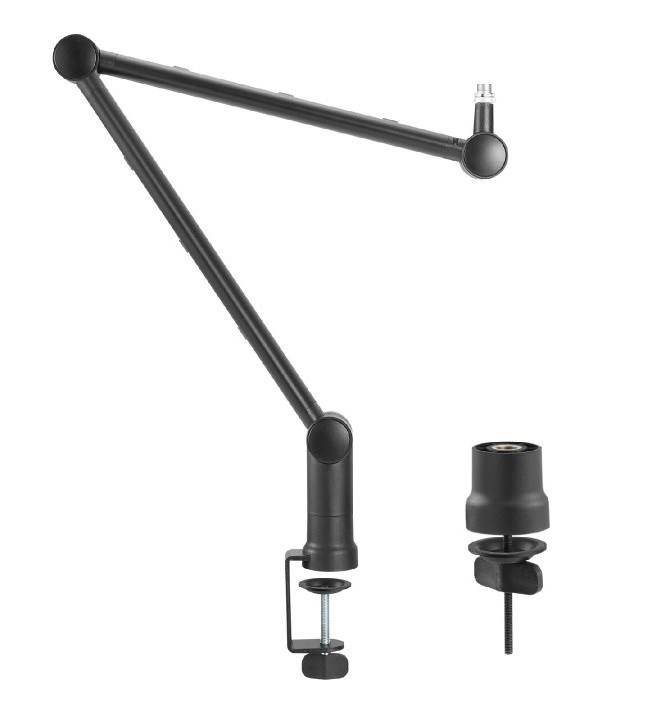 Stolný držiak na mikrofón Fiber Mounts M8C98 Univerzálny klbový držiak mikrofónu, štýlová a stabilná hliníková konštrukcia, štandardná montáž na závit 3/8 " alebo 5/8", integrované vedenie kábla. Nosnosť 1 kg. Max. výškový rozsah 949 mm. Dĺžka ramena 825 mm. Uhol otočenia 360° Mikrofónové rameno / držiak je vhodný pre väčšinu štúdiových a počítačových mikrofónov, ktoré je možné namontovať na štandardný závit 3/8" alebo 5/8". Je tvorené odolnou hliníkovou konštrukciou a vybavené vnútornými pružinami a praktickým vedením káblov. Stane sa skvelým pomocníkom vo vysielaní naživo, pri klasickom nahrávaní hlasu alebo hraní hier. Rameno je možné uchytiť na pracovnú plochu alebo trvalo pripevniť na miesto. Stolný držiak na mikrofóny Fiber Mounts M8C98 Pre úplnú kompatibilitu s mikrofónmi EU aj USA je v balení dodávaný štandardný závitový adaptér (3/8 "16mm samec na 5/8" 27mm samica). Technické údaje Nosnosť: 1 kg Univerzálne klbové mikrofónové rameno Štýlová a stabilná hliníková konštrukcia Štandardná montáž na závit 3/8 "a 5/8" Integrované vedenie kábla Materiál: oceľ, plast, hliník Max. výškový rozsah: 949 mm Dĺžka ramena: 825 mm Uhol otočenia: 360° Priemer ramena: 45 x 23 mm Rozteč montážnej svorky: 10 - 60 mm Záruka 2 roky