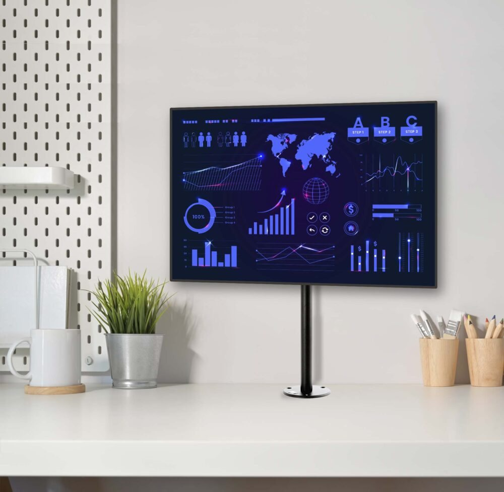 Stolný držiak na dotykové monitory EDBAK SV30 Držiak na TV a monitory 15-43", nastaviteľná výška 280-450mm, nastavenie náklonu -30°/+90°, otáčanie do strán +/-180°, 2 typy stolových uchýtov, VESA 75x75 a 100x100, nosnosť 10kg Stolný držiak pre monitory a televízie 15-43", ktorý vyniká svojou vynikajúcou kvalitou, nastaviteľnosťou a aretáciou obrazovky v nastavenej polohe. Nastaviteľná výška v rozmedzí 28-45cm od stolovej dosky, otočenie do strany +/- 180°, naklápanie v širokom rozsahu od -30° až do +90° (obrazovka vodorovne). Držiak je dodávaný so 2 typmi stolového uchytenia - svorka pre uchytenie na okraje stolov a hliníková skruž s otvormi na ukotvenie do stolovej dosky. Držiak podporuje VESA štandardy 75x75 a 100x100 a má nosnosť 10kg. Vďaka pevnej konštrukcii a aretácii polohy je držiak vhodný nielen na monitory a televízie, ale aj na dotykové obrazovky. Záruka 5 rokov. Stolný držiak na monitory EDBAK SV30 Technické údaje: nosnosť 10kg vhodný pre monitory, televízie a dotykové obrazovky 15" - 43" podporuje VESA štandardy 75x75 a 100x100 nastaviteľná výška 280 až 450mm otočný +/- 360° sklopný +90°/-30° voľba vhodného typu uchytenia na stolovú dosku - na okraj alebo do priestoru fixácia v požadovanej polohe ľahká inštalácia farebné vyhotovenie čierne záruka 5 rokov Stolné držiaky na monitory alebo televízie Edbak SV30 Držiak podporuje VESA štandardy na uchytenie monitorov: VESA 75x75 VESA 100x100 Na držiaky EDBAK SV30 je možné zavesiť všetky monitory a televízory, ktorých hmotnosť je maximálne 10kg a ktoré podporujú niektorý z vyššie uvedených VESA štandardov. Výška televízie alebo monitora (nie uhlopriečka) nesmie byť väčšia ako 36cm.