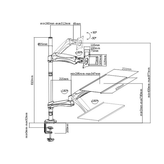 Stolný držiak na monitor, klávesnicu a myš Fiber Mounts M68C1 Kvalitný stolný držiak na monitor, klávesnicu aj myš, ktorý Vám umožní prácu vsedla alebo vstoja Stolný držiak, ktorý Vám kedykoľvek umožní rýchlu zmenu nastavenia tak, že môžete ihneď začať pracovať vstoja. Držiak umožňuje veľmi rýchlu zmenu polohy výšky monitoru aj police na klávesnicu a myš. Sami si tak kedykoľvek zvolíte, či budete pracovať vsedla alebo vstoja. Držiak umožňuje uchytenie na kraj alebo kdekoľvek v priestore stolovej dosky. Polohovanie je veľmi jednoduché a rýchle, nie je potrebný žiadny náradie ani zložité manipulácie, nastavenie do požadovanej polohy je otázkou pár sekúnd. Pracovná stanica - stolný držiak na monitor s policou na klávesnicu a myš, oboje výškovo polohovateľné, otáčanie do strán, naklápanie, TOP kvalita, jednoduchá ovládateľnosť - držiak Fiber Mounts M68C1 Technické údaje: max. zaťaženie 9kg uchytenie monitora pomocou VESA štandardu 75x75 alebo 100x100 odporúčaná uhlopriečka monitora 13" až 32" polica na klávesnicu a myš o rozmeroch 650x211mm nastaviteľná vzdialenosť od stredu nosníka ako monitora, tak aj police na klávesnicu a myš rýchla zmena pracovnej výšky ako monitora tak aj police na klávesnicu a myš umožňuje prácu vestoja aj vsedla rýchla zmena pozície pre prácu vestoja aj vsedla bez použitia náradia 2 typy uchytenia na stolovú dosku - do kraja alebo kamkoľvek do priestoru možnosť nastavenia monitora do horizontálnej alebo vertikálnej polohy otáčanie monitora do strán bez obmedzení nastavenie sklonu monitora podľa potreby v uhloch až +/-90° otáčanie klávesnice do strán bez obmedzení vynikajúci pracovný komfort výborná kvalita spracovania masívna hliníková konštrukcia 2 typy uchytenia na stolovú dosku - do kraja alebo kamkoľvek do priestoru farebné prevedenie čierne záruka 3 roky Držiak monitora a klávesnice M68C1 podporuje VESA štandardy: VESA 75x75 VESA 100x100 možnosť zakúpenia vrátane nástavca VESA 200x100 a 100x200 možnosť zakúpenia vrátane nástavca VESA 200x200 Držiak M68C1 je vhodný na zavešenie všetkých typov monitorov, ktoré podporujú VESA štandard 75x75 alebo 100x100, majú hmotnosť max. 9kg. Odporúčaná veľkosť monitora 17-32". Stolný držiak na monitor - výškovo polohovateľný, otočný a sklápací + police na klávesnicu s myšou, výškovo polohovateľná, otočná a sklápacia - Fiber Mounts M68C1 2 typy uchytenia na stolovú dosku - na kraj stola (bez vŕtania) alebo kdekoľvek do priestoru (nutné vyvŕtať dieru na aretovací skrut). Polička na klávesnicu s myšou na stolovom polohovateľnom držiaku Fiber Mounts M68C1 Umožňuje prácu vstoja aj vsedla - kedykoľvek ľahko a rýchlo zmeníte pozíciu držiaka podľa vlastnej potreby, bez použitia náradia.