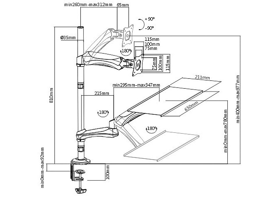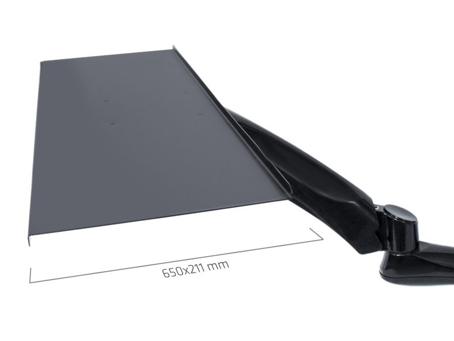 Stolný držiak na monitor, klávesnicu a myš Fiber Mounts M68C1 Kvalitný stolný držiak na monitor, klávesnicu aj myš, ktorý Vám umožní prácu vsedla alebo vstoja Stolný držiak, ktorý Vám kedykoľvek umožní rýchlu zmenu nastavenia tak, že môžete ihneď začať pracovať vstoja. Držiak umožňuje veľmi rýchlu zmenu polohy výšky monitoru aj police na klávesnicu a myš. Sami si tak kedykoľvek zvolíte, či budete pracovať vsedla alebo vstoja. Držiak umožňuje uchytenie na kraj alebo kdekoľvek v priestore stolovej dosky. Polohovanie je veľmi jednoduché a rýchle, nie je potrebný žiadny náradie ani zložité manipulácie, nastavenie do požadovanej polohy je otázkou pár sekúnd. Pracovná stanica - stolný držiak na monitor s policou na klávesnicu a myš, oboje výškovo polohovateľné, otáčanie do strán, naklápanie, TOP kvalita, jednoduchá ovládateľnosť - držiak Fiber Mounts M68C1 Technické údaje: max. zaťaženie 9kg uchytenie monitora pomocou VESA štandardu 75x75 alebo 100x100 odporúčaná uhlopriečka monitora 13" až 32" polica na klávesnicu a myš o rozmeroch 650x211mm nastaviteľná vzdialenosť od stredu nosníka ako monitora, tak aj police na klávesnicu a myš rýchla zmena pracovnej výšky ako monitora tak aj police na klávesnicu a myš umožňuje prácu vestoja aj vsedla rýchla zmena pozície pre prácu vestoja aj vsedla bez použitia náradia 2 typy uchytenia na stolovú dosku - do kraja alebo kamkoľvek do priestoru možnosť nastavenia monitora do horizontálnej alebo vertikálnej polohy otáčanie monitora do strán bez obmedzení nastavenie sklonu monitora podľa potreby v uhloch až +/-90° otáčanie klávesnice do strán bez obmedzení vynikajúci pracovný komfort výborná kvalita spracovania masívna hliníková konštrukcia 2 typy uchytenia na stolovú dosku - do kraja alebo kamkoľvek do priestoru farebné prevedenie čierne záruka 3 roky Držiak monitora a klávesnice M68C1 podporuje VESA štandardy: VESA 75x75 VESA 100x100 možnosť zakúpenia vrátane nástavca VESA 200x100 a 100x200 možnosť zakúpenia vrátane nástavca VESA 200x200 Držiak M68C1 je vhodný na zavešenie všetkých typov monitorov, ktoré podporujú VESA štandard 75x75 alebo 100x100, majú hmotnosť max. 9kg. Odporúčaná veľkosť monitora 17-32". Stolný držiak na monitor - výškovo polohovateľný, otočný a sklápací + police na klávesnicu s myšou, výškovo polohovateľná, otočná a sklápacia - Fiber Mounts M68C1 2 typy uchytenia na stolovú dosku - na kraj stola (bez vŕtania) alebo kdekoľvek do priestoru (nutné vyvŕtať dieru na aretovací skrut). Polička na klávesnicu s myšou na stolovom polohovateľnom držiaku Fiber Mounts M68C1 Umožňuje prácu vstoja aj vsedla - kedykoľvek ľahko a rýchlo zmeníte pozíciu držiaka podľa vlastnej potreby, bez použitia náradia.