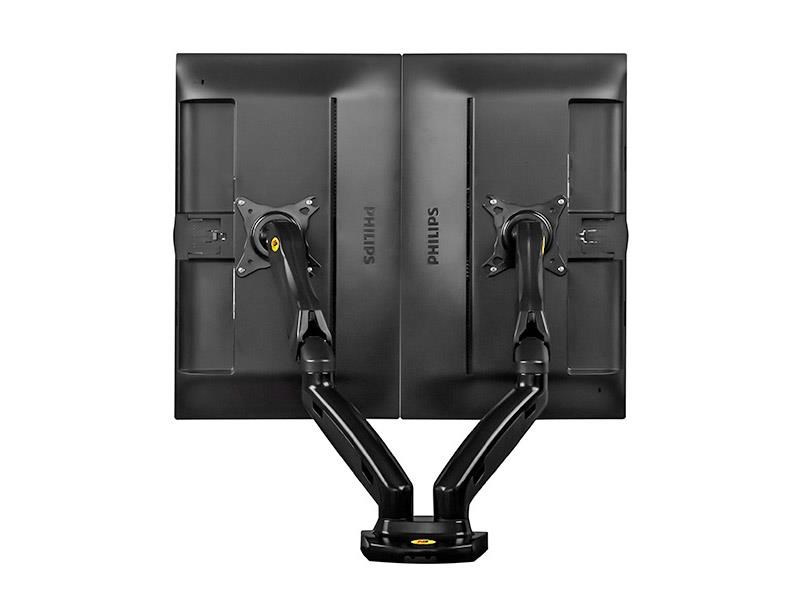 Stolný držiak na 2 monitory displeja NB F160 Stolný držiak na zavesenie 2 monitorov 17-30", nezávislé nastavenie každého monitora, výškové polohovanie 140-400mm, otáčanie do strán +/-180°, naklápanie +85°/-30°, vzdialenosť od uchopovacieho bodu 0-530mm, pivot +/-360°, VESA 75x75 a 100x100, nosnosť 18kg Vynikajúci stolný držiak na monitory a menšie televízory v profesionálnej kvalite, s pekným dizajnom, s množstvom nadštandardných možností nastavenia. Otáčanie obrazovky do strán, naklonenie nahor aj nadol vo vysokom uhle, nastavenie vzdialenosti od uchytenia, korekcia roviny obrazovky, horizontálne alebo vertikálne otočenie obrazovky, systém skrytého vedenia káblov. Výškové nastavenie až 400mm, výšková regulácia 260mm - veľmi jednoduchá manipulácia. Všetko v unikátnom dizajne. Držiak má veľmi odolnú a bezpečnú konštrukciu a je vhodný aj do veľmi vytížených prevádzok, kde je potrebná neustála manipulácia. Stolný držiak na 2 monitory NB F160 NB F160 kvalitný dvojmonitorový držiak na stôl, polohovateľný Držiak je vďaka možnosti úplnej nastaviteľnosti, profesionálnej konštrukcii a peknému dizajnu vhodný pre veľmi široké spektrum využitia. Odporúčame ako do domácností, tak kancelárií, pracovní, školských tried, nemocníc, call centier, IT pracovísk, prevádzok a firiem. Stolný multimonitorový držiak NB F160 - nezávislé zavesenie 2 monitorov na stolný držiakKancelársky stolný držiak na 2 PC monitory v TOP kvalite a dizajne - NB F160 Technické údaje: nosnosť 18kg podporuje VESA štandardy 75x75 a 100x100 odporúčame na monitory a televízory s uhlopriečkou 17" až 30" otáčanie na obe strany +180° až -180° nastavenie výšky monitorov 140-400mm naklonenie monitorov +85°/-30° vzdialenosť od stolového uchytenia 0-530mm horizontálne aj vertikálne otočenie obrazovky - funkcia pivot +/-360° systém pre vedenie káblov profesionálny držiak vyššej kvality 2 typy uchytenia na stolovú dosku - na okraj alebo skrz stolovú dosku 10-90mm záruka 5 rokov Kancelársky držiak na dva monitory NB F160 Kvalitný polohovací držiak na monitory do kancelárie NB F160