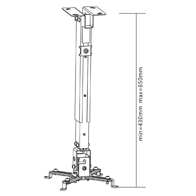 Stropný držiak na projektor Fiber Mounts M5C81 Stropný držiak na projektory, univerzálny, nastavenie vzdialenosti od stropu 430-650mm, naklápanie +/-15°, farba strieborná, nosnosť 20kg Držiak na projektor s nastaviteľnou dĺžkou od stropu, celokovové prevedenie s vynikajúcou bezpečnosťou. Dve možnosti zostavenia držiaku so vzdialenosťou od stropu 130mm alebo 430 až 650mm. Možnosť náklonu a korekcie roviny. Jednoduché nastavenie a manipulácia. Dodávame v striebornej farbe vrátane inštalačného materiálu. Predĺžená záruka na 5 rokov. Dĺžkovo nastaviteľný stropný držiak na projektory a dataprojektory Fiber Mounts M5C81 Technické údaje: Nosnosť 20kg Vhodný na 99% všetkých dostupných projektorov s možnosťou zavesenia Náklon až +/- 15° Korekcia roviny +/- 15° Dve možnosti zostavenia - vrátane alebo bez dĺžkového nástavca S dĺžkovým nástavcom - vzdialenosť od stropu 430-650mm Bez dĺžkového nástavca - vzdialenosť od stropu 130mm Systém pre vedenie káblov Kovová konštrukcia, veľmi bezpečné zavesenie Jednoduchá montáž Inštalačný materiál súčasťou balenia Farba strieborná Záruka 5 rokov Držiak projektora M5C81 je možné použiť bez dĺžkového nástavca Možnosť zostavenia tohto stropného držiaku na projektor v dvoch verziách: vrátane dĺžkového nástavca, kedy bude možné projektor vzdialiť od stropu na 430mm až 650mm, alebo ho zostaviť bez dĺžkového nástavca, kedy bude výška fixná v vzdialenosti 130mm od stropu.