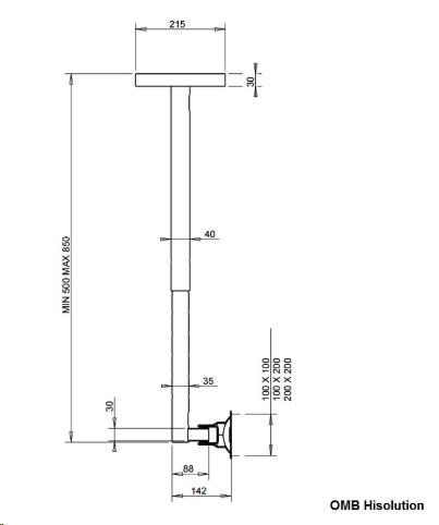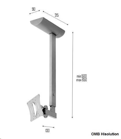 Držiak na zavesenie TV a monitorov s uhlopriečkou 17-42" na strop, dĺžkové nastavenie Cenovo dostupný stropný držiak TV alebo monitora, ktorý je výborného spracovania a kvality. Držiak Vám umožní plnohodnotné nastavenie polohy obrazovky: otáčanie do strán, náklon alebo výškové polohovanie. Vďaka krytke je možné aj ukotvenie za sadrokartónový strop - priechod zakryjete. Káblovú inštaláciu je možné viesť vo vnútri držiaka. Na výber máte zo dvoch farebných variánt: čierny alebo strieborný. Držiak podporuje VESA štandardy 75x75 až 200x200, možné je za príplatok rozšírenie VESA až na 400x400. Držiak je vhodný na všetky typy televízorov aj monitorov s hmotnosťou do 20kg, odporúčaná uhlopriečka je 17-42", s rozšíreným VESA štandardom až na 52". OMB Hisolution - stropný držiak televízie monitoru - originál od OMB Technické údaje: nosnosť 20kg na televízory a monitory 17" až 42" sklopný nahor aj nadol +20° / -20° otočný do strán +95° / -95° nastaviteľná dĺžka ramena 50-85cm vysoká kvalita spracovania možnosť vedenia káblovej inštalácie vo vnútri držiaka krytka stropného uchytenia farba čierna alebo strieborná záruka 2 roky Stropný držiak na televízory a monitory OMB Hisolution čierny Stropný držiak TV alebo monitoru OMB Hisolution podporuje VESA štandardy: VESA 50x50 VESA 75x75 VESA 100x100 VESA 200x100 VESA 200x200 Pri zakúpení rozšírenia VESA štandardu bude držiak podporovať aj VESA štandardy: VESA 300x200 VESA 300x300 VESA 400x200 VESA 400x300 VESA 400x400 Držiak je vhodný na všetky typy televízorov aj monitorov, ktoré majú hmotnosť do 20kg a ktoré podporujú niektorý z vyššie uvedených VESA štandardov v rozmedzí 50x50 až 200x200, pri zakúpení rozšírenia podporujú VESA až 400x400.
