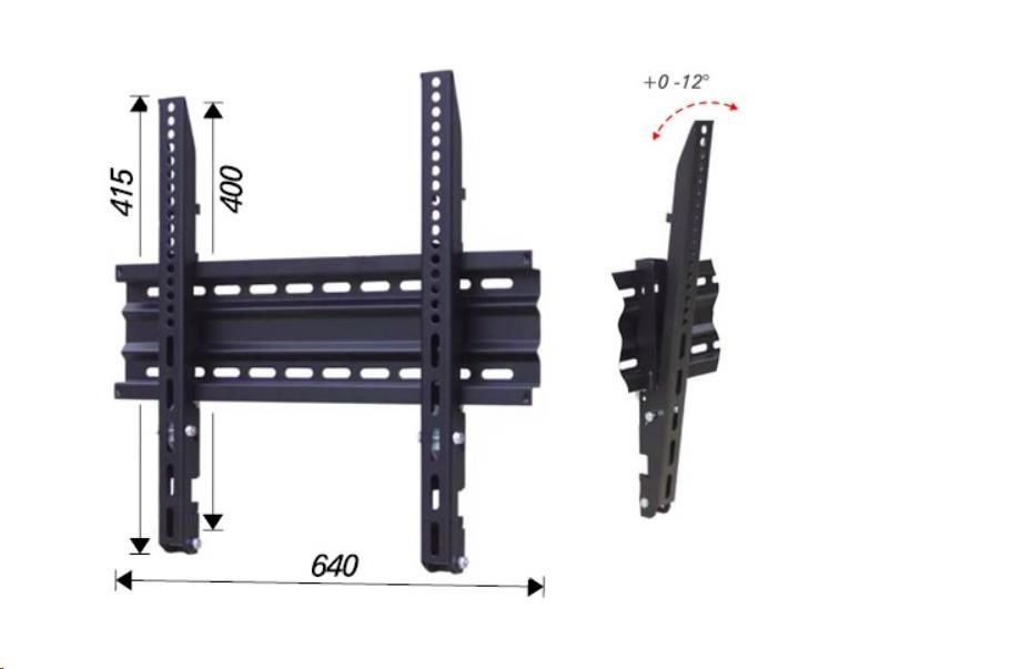 Kompletná špecifikácia Stropný držák TV OMB LIFT600 TILT Vysoko kvalitný stropný držiak na televízory 32-60", dĺžkové nastavenie 60-100cm, nosnosť 75kg Profesionálny stropný držiak na zavesenie televízorov, monitorov alebo informačných panelov na stropnú konštrukciu. Držiak umožňuje nastavenie vzdialenosti od stropu v rozmedzí 64 až 104cm. Podporuje VESA štandardy 100x100 až 600x400, nosnosť 75kg. Možnosť náklonu obrazovky 0° až -12°. Stropný držiak na televízor, monitor alebo informačný panel - Omb Lift New - otočný, dĺžkovo nastaviteľný, profesionálny V prípade dokúpenia 1ks držáka OMB SLIM TILT 600 je možné na stropný držiak OMB Lift New 600 zavesiť 2 obrazovky chrbtom k sebe. Stropný držiak OMB Lift New je v prípade dokúpenia 1ks držáka OMB SLIM TILT 600 vhodný aj na zavesenie 2 obrazoviek chrbtom k sebe. Technické údaje: odporúčaná veľkosť obrazovky 32" - 60" podporuje VESA štandardy 100x100 až 600x400 dodanie vrátane 1ks držiaka na obrazovky možnosť dokúpenia 2. držiaka - zavesenie 2 obrazoviek chrbtom k sebe nosnosť 75kg dĺžkové nastavenie 640 - 1040mm otočný o 360° sklopný 0° / -12° ľahké nastavenie materiál oceľ farba čierna záruka 5 rokov Stropný držiak OMB Lift New 600 podporuje VESA štandardy: VESA 100x100 VESA 200x100 VESA 200x200 VESA 300x200 VESA 300x300 VESA 400x200 VESA 400x300 VESA 400x400 VESA 600x400