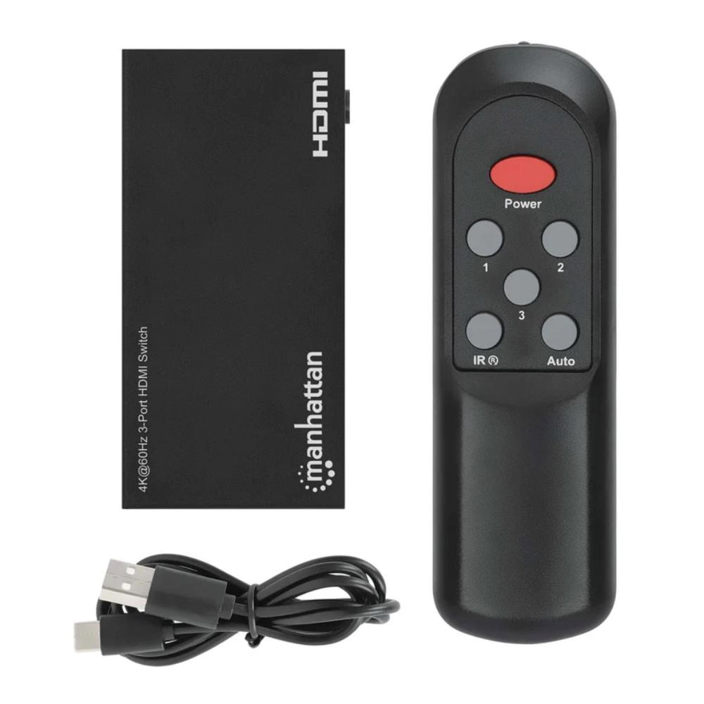 Switches between three HDMI audio/video source signals on a single display Resolutions up to Ultra-High-Definition (UHD) 4K@60Hz (3840×2160) Automatically switches to a newly turned on source, with the option for manual switching via IR remote control or the push of a button on the HDMI switch.