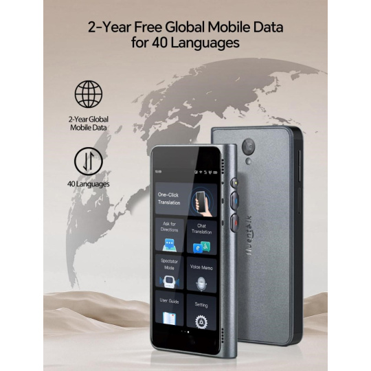 - Objavujte svet bez obáv o dáta. Dvojročný bezplatný dátový tarif eliminuje potrebu Wi-Fi a zabezpečuje neprerušované online preklady kdekoľvek na svete.
