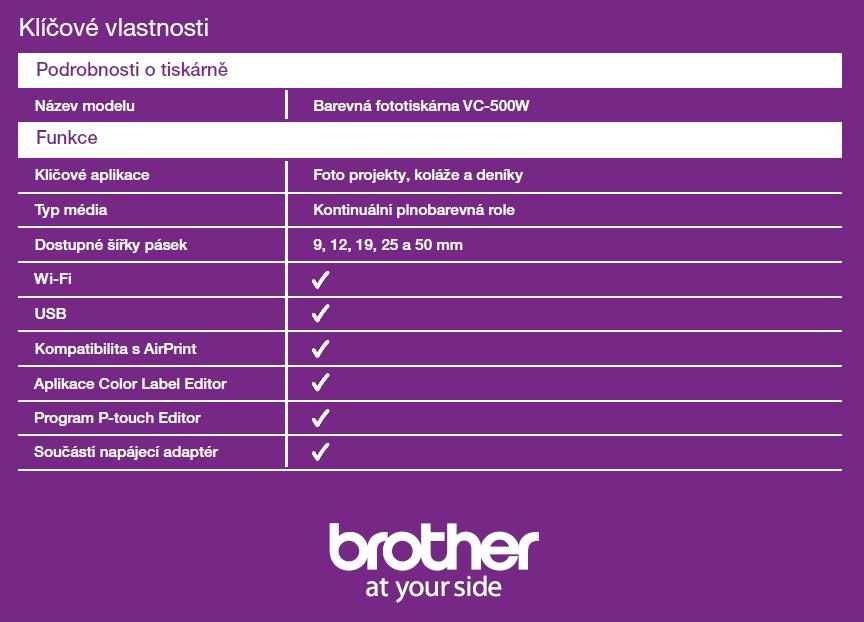 Tlačiareň štítkov BROTHER FOTO - VC500W - WIFI, USB, farebná bez atramentu - integrovaná rezačka