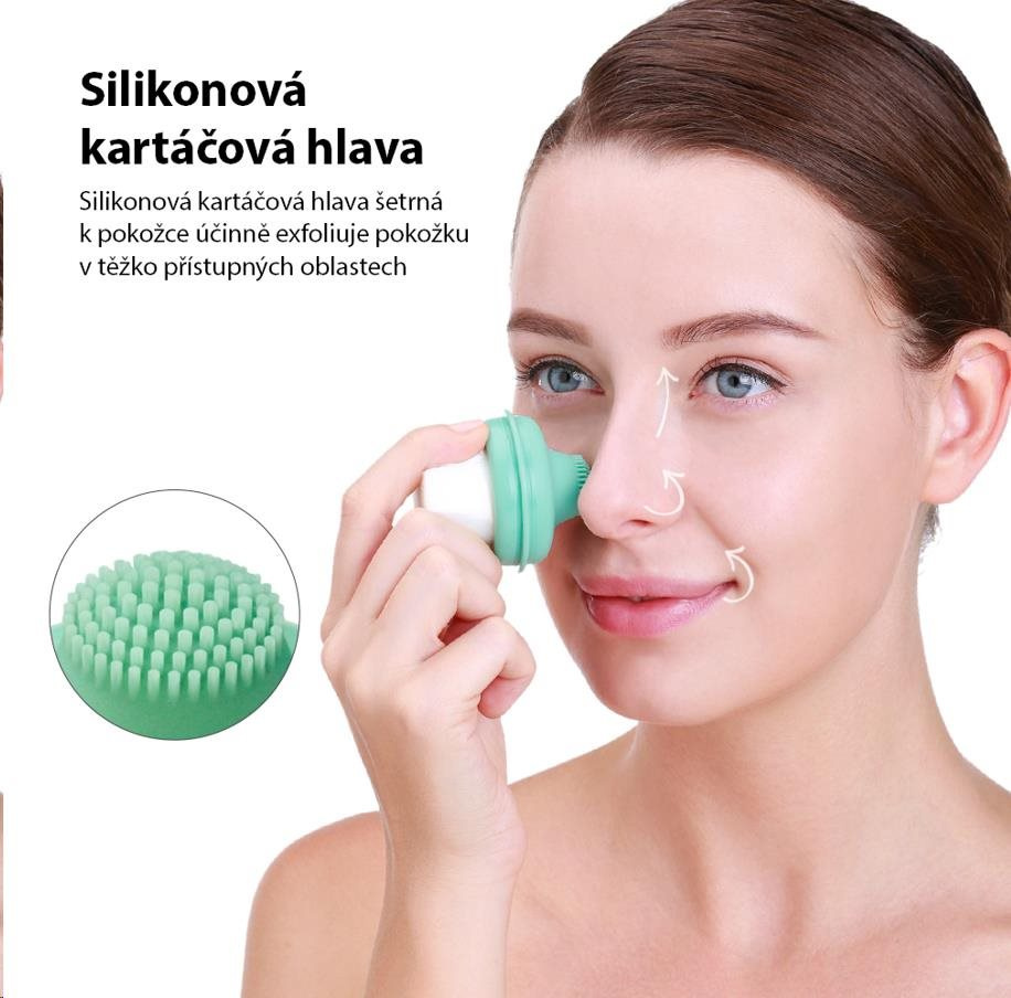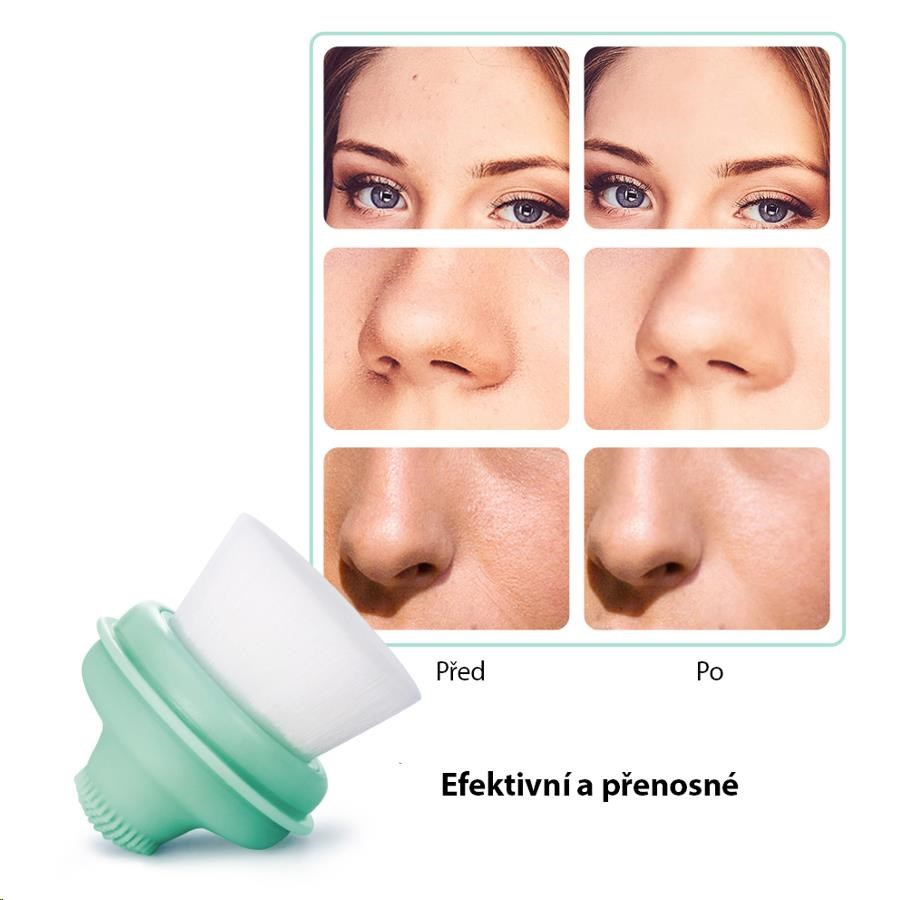 - Silikónová hlavica kefky v tvare kvapky, špeciálne navrhnutá pre čistenie nosa a čela.