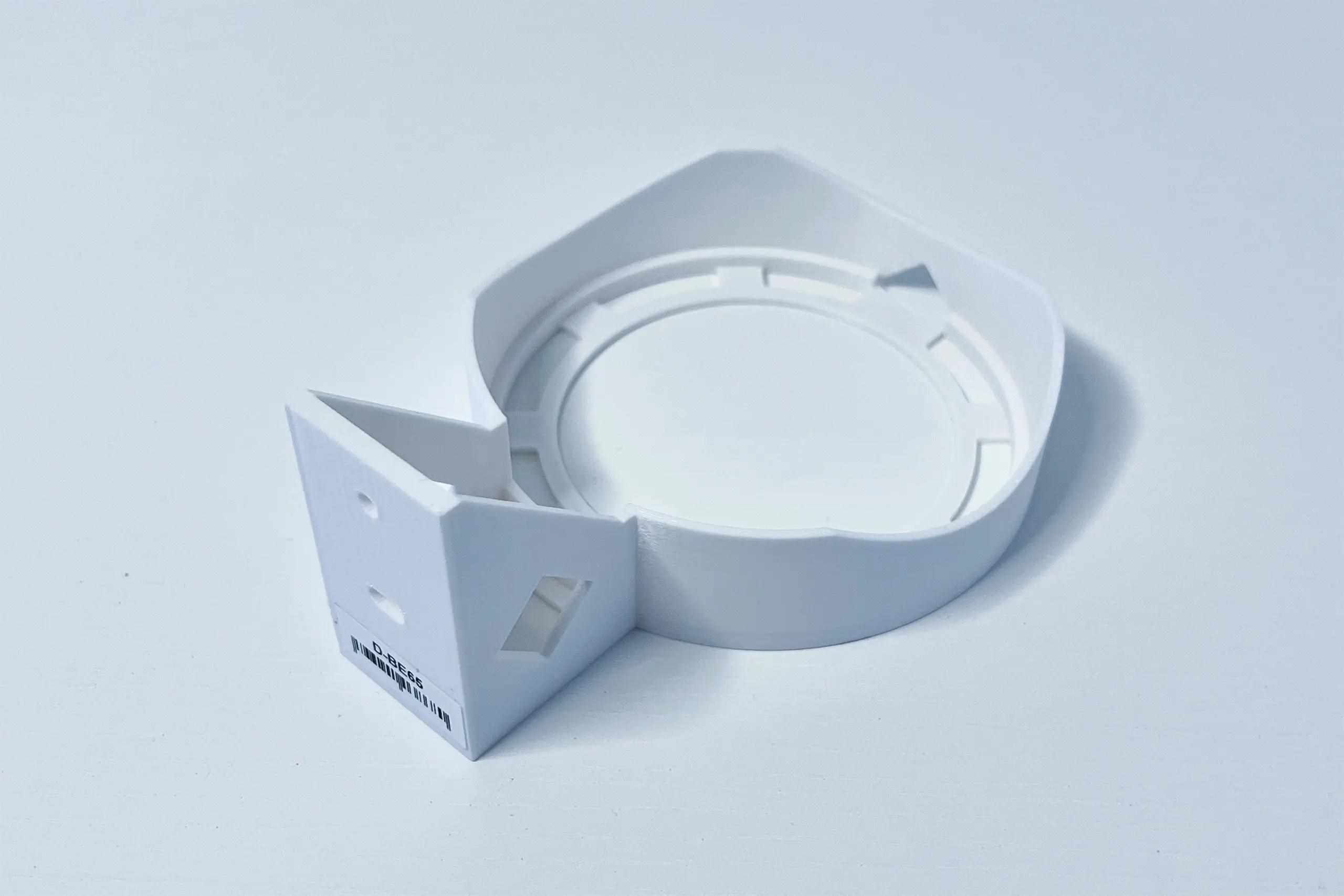 Plastový držiak na stenu pre TP-Link DECO BE65 na stenu a to pomocou dvoch skrutiek. Držiak je vyrobený z PETG materiálu na 3D tlačiarni a má bielu farbu.