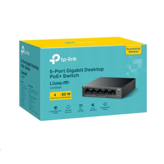 TP-Link LiteWave switch LS105GP (5xGbE, 4xPoE+, 65W, fanless)