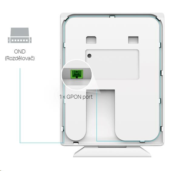 | GPON rozhranie | • Typ portu: SC-APC • Štandardy a protokoly: ITU-984.x, G.988, Class B+ • Rýchlosť dát: 2,488 Gbps (Downstream); 1,244 Gbps (Upstream) • Typ vlákna: 9/125 um Single mode • Maximálna dĺžka kábla: 20 km |