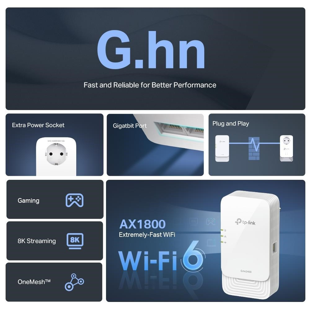 | Kompatibilita | Kompatibilné so všetkými smerovačmi a G.hn Powerline adaptérmi. Nie je kompatibilné s HomePlug AV/AV2 Powerline adaptérmi. |